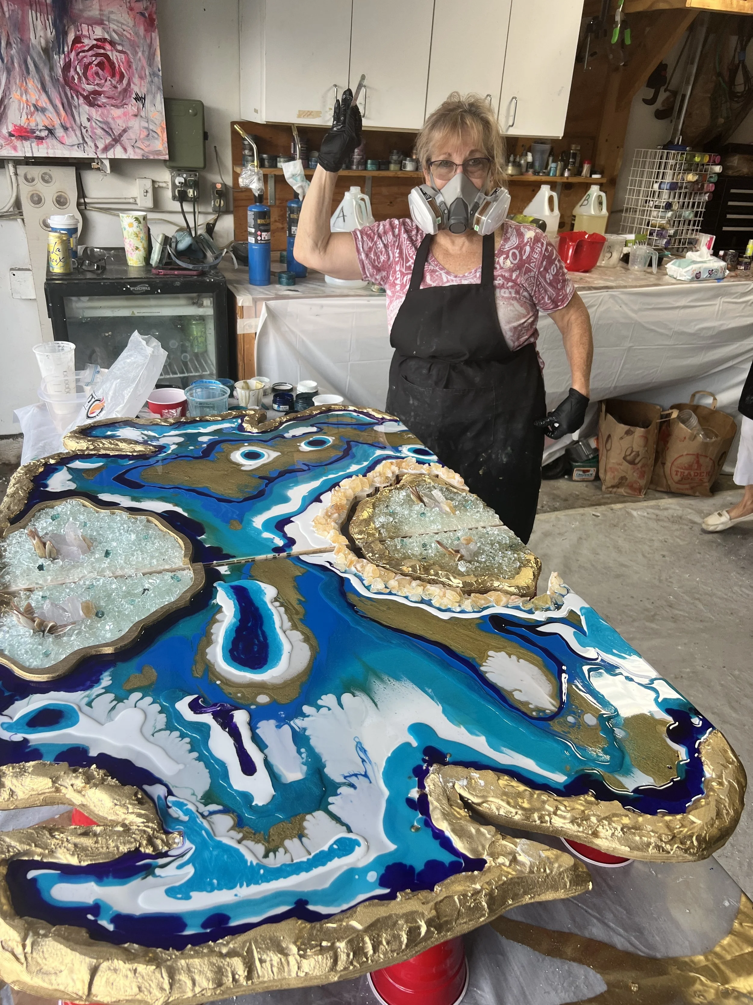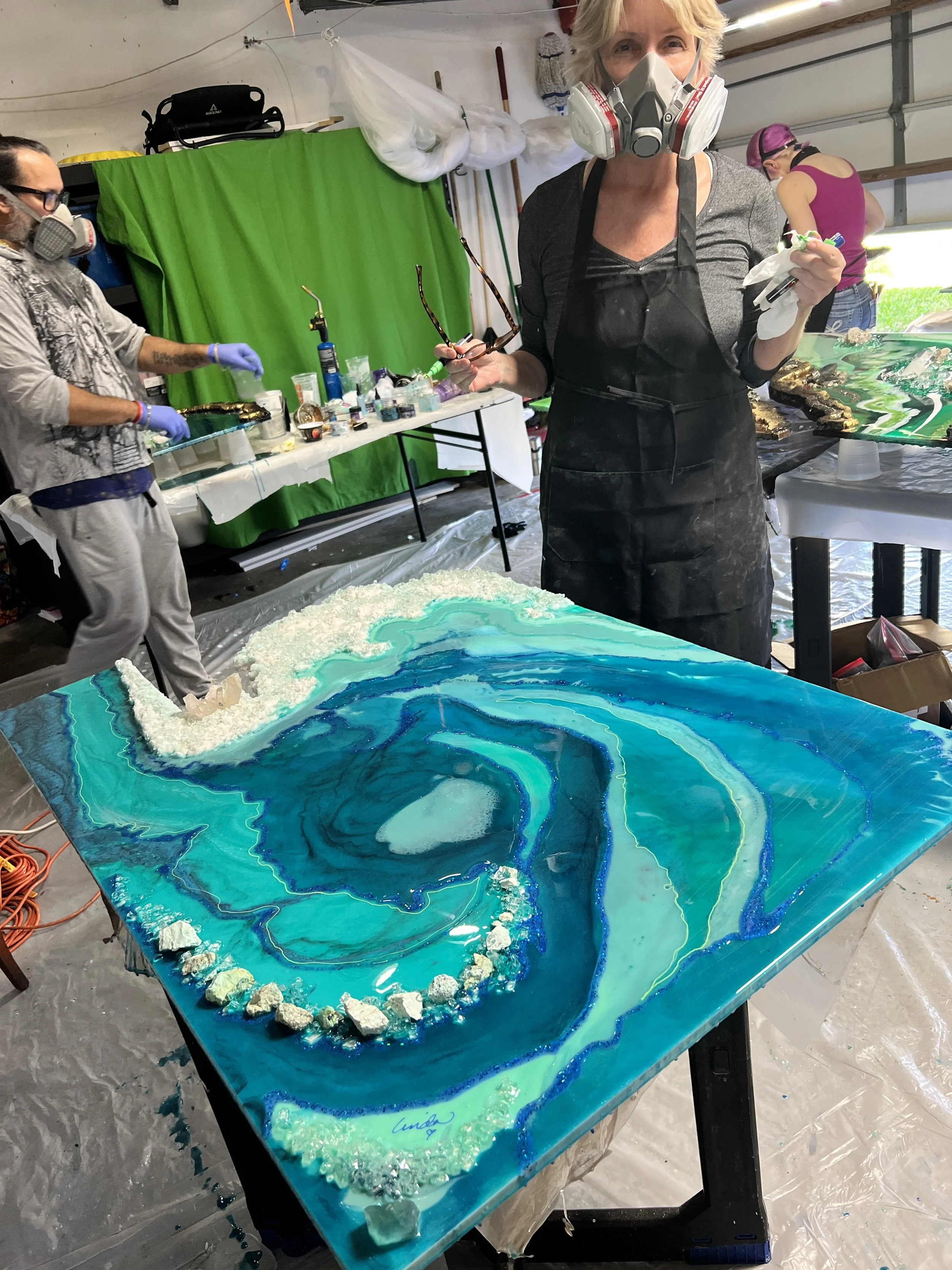 In many cases, I’ll need to take the art with me for drying and finalizing details such as framing, glass, resin, correcting any mistakes.